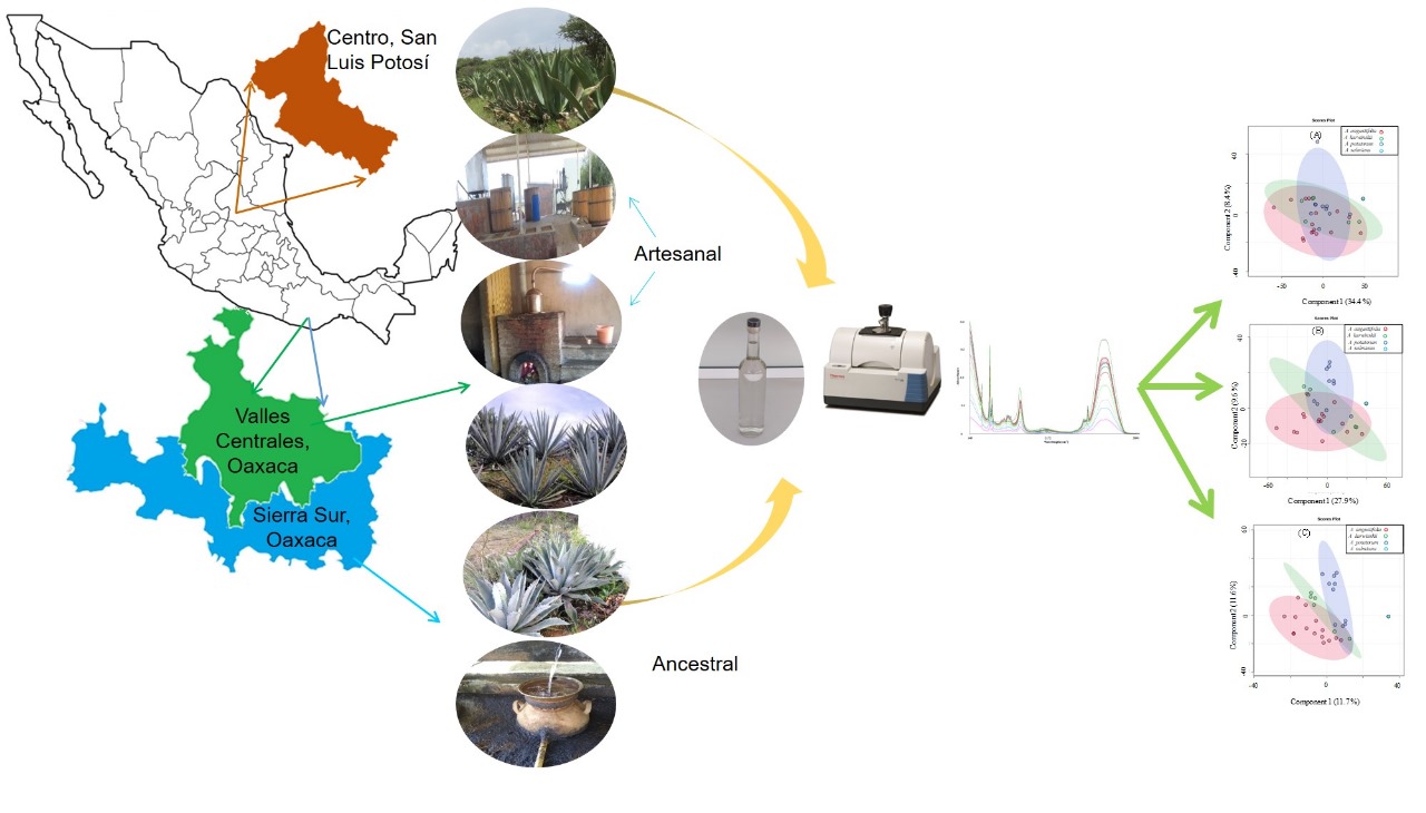 López-Aguilar, R., Zuleta-Prada, H., Hernández-Montes, A., Herbert-Pucheta, J.E. 2021. Comparative NMR Metabolomics Profiling between Mexican Ancestral & Artisanal Mezcals and Industrialized Wines to Discriminate Geographical Origins, Agave Species or Grape Varieties and Manufacturing Processes as a Function of Their Quality Attributes. Foods. 10(1), 157.